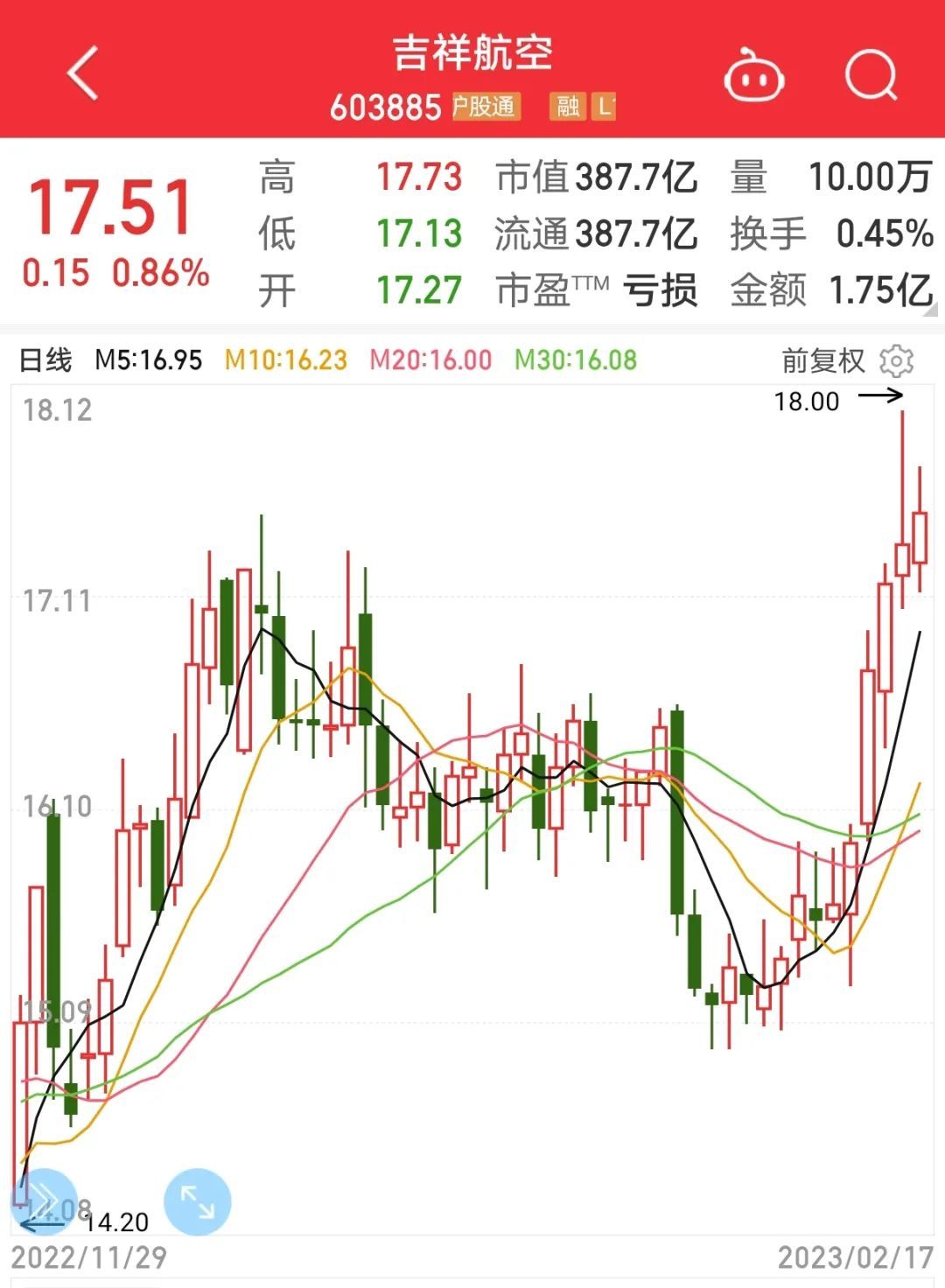 吉祥航空1月主要经营数据表现较好,2023年1月,公司国内客运运力投入(按可用座位公里计)较上月环比上升49.12%,国内旅客运输量(按收入客公里计)环比上升75.31%,国内航线客座率环比上升11.17%。对于2023年未来的发展情况,公司在投资者问答平台上表示,公司将自2023年起,积极抓住春运、暑运等行业机会,力争将航班量、利用率等指标早日恢复到正常水平。